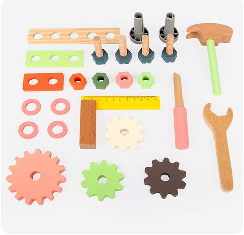 Varbertos मिनी उपकरण बेंच खिलौना बच्चों के लिए सेट Toddlers के, लकड़ी के उपकरण कार्यक्षेत्र सेट, निर्माण कार्यशाला नाटक खेलने खिलौना उपहार